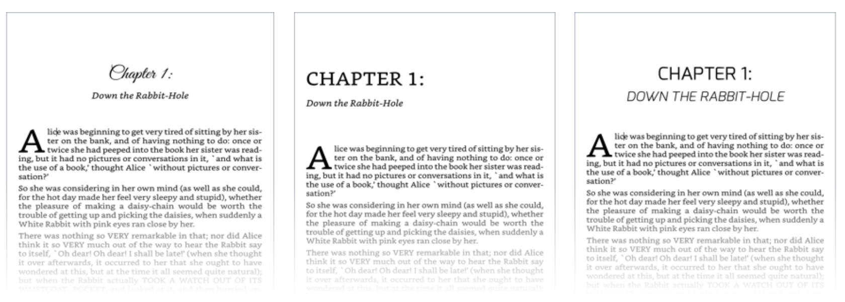 Here’s how you create drop caps: Simply stick the cursor next to the first word in the first paragraph of a chapter and click Chapter First Paragraph.