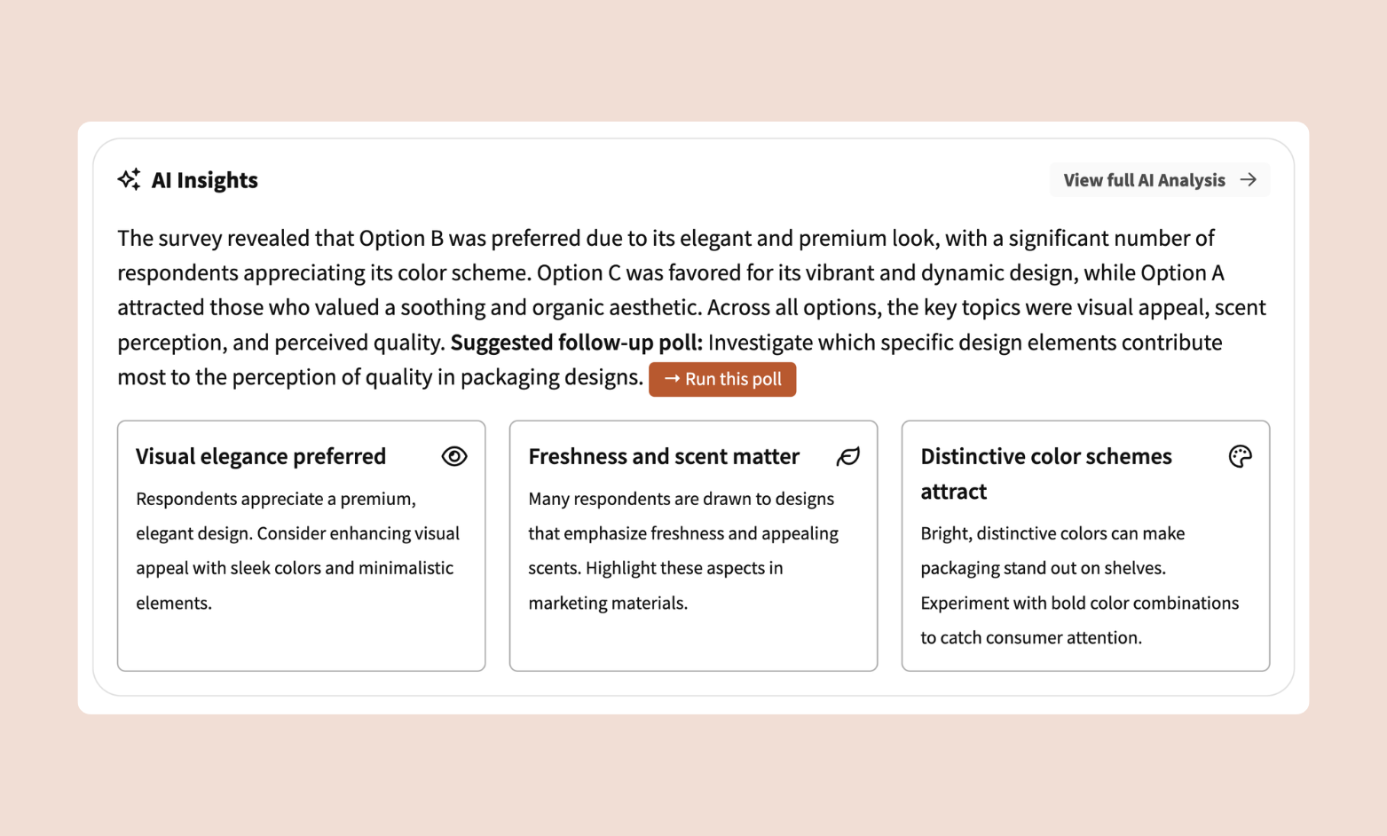 Get results within hours – less than traditional market research or live A/B tests – so you can pivot quickly and start seeing ROI.