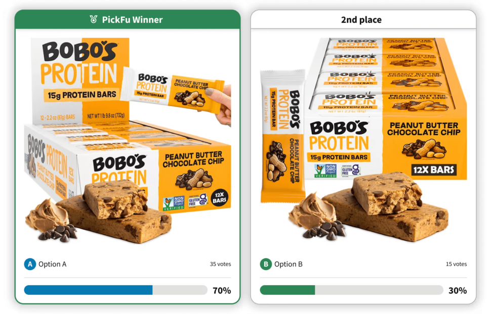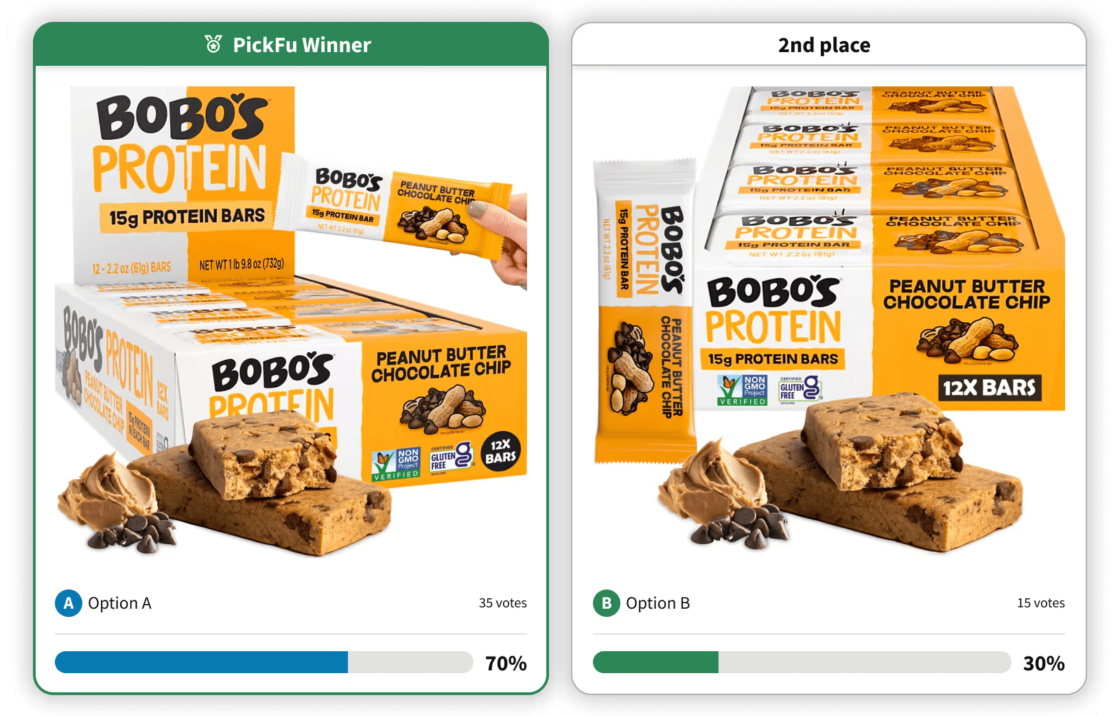 On top of that, PickFu offers some exclusive options that Amazon doesn’t. You can test additional content variables that Amazon MYE doesn’t offer, such as headlines, layouts, product packaging, and even your brand name.
