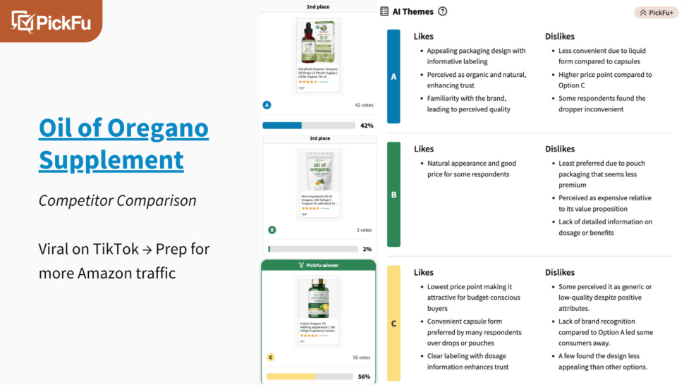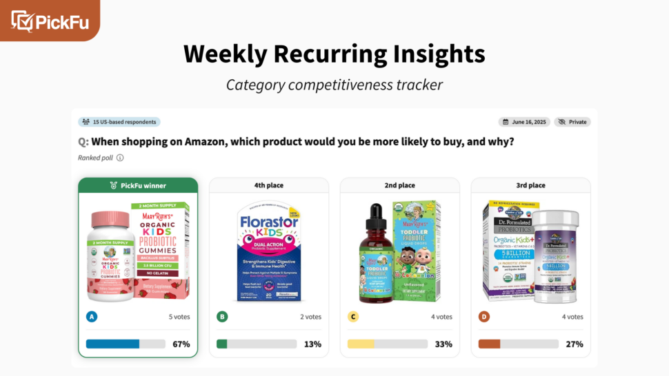 If you’re a scaling Amazon brand, the lesson is clear: don’t wait until sales dip to optimize. Use PickFu to test early, test often, and test with purpose.
