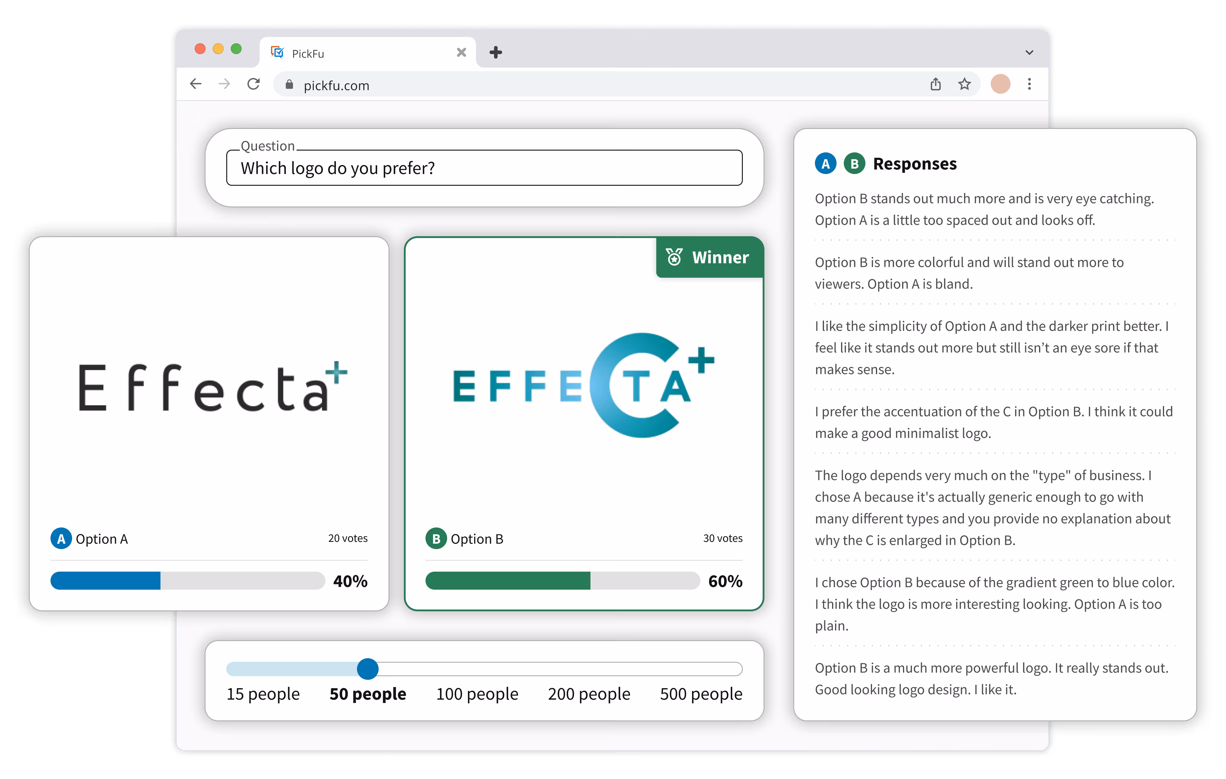 Run a poll and get in-depth feedback from real people in minutes. It's that easy.